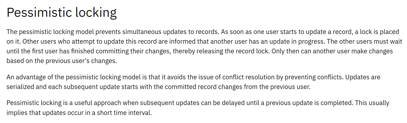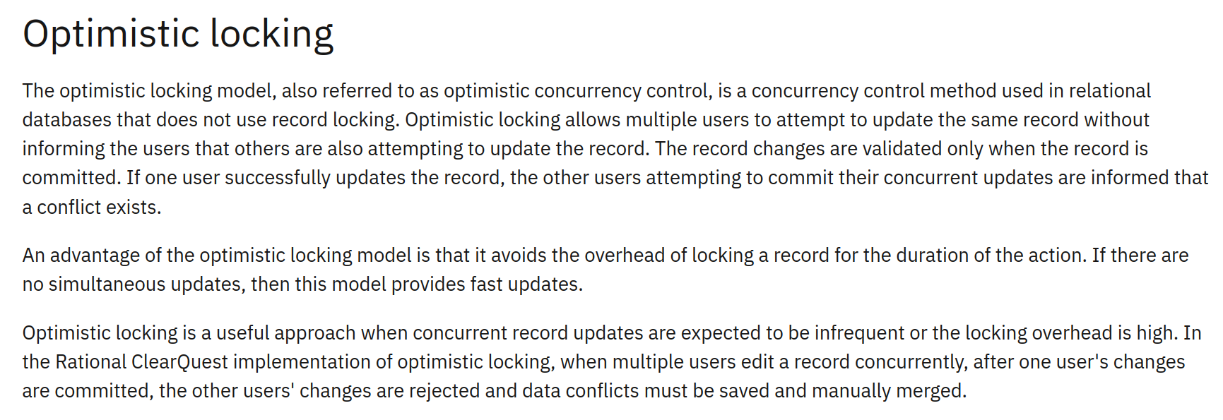 - https://www.ibm.com/docs/en/rational-clearquest/7.1.0?topic=clearquest-optimistic-pessimistic-record-locking