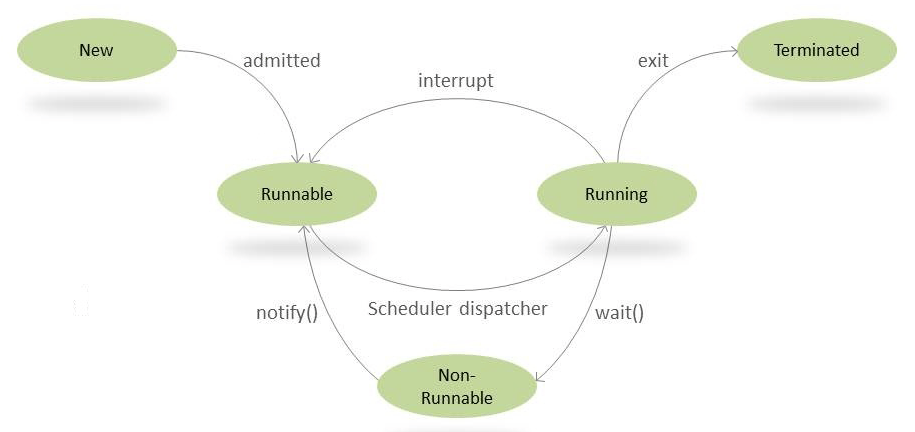 We can better understand this from the following diagram depicting the life cycle of a Thread: