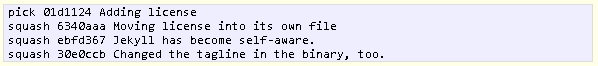 Since we’re combining so many commits, Git allows you to modify the new commit’s message based on the rest of the commits involved in the process. Edit the message as you see fit, then save and quit. Once that’s done, your commits have been successfully squashed!