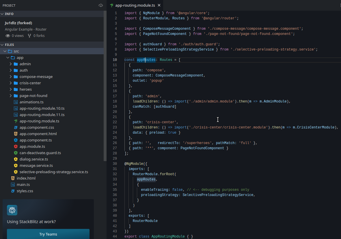 After running this, if you look at app.module.ts, you should see that the new component is already registered with AppModule (declarations and import statements).