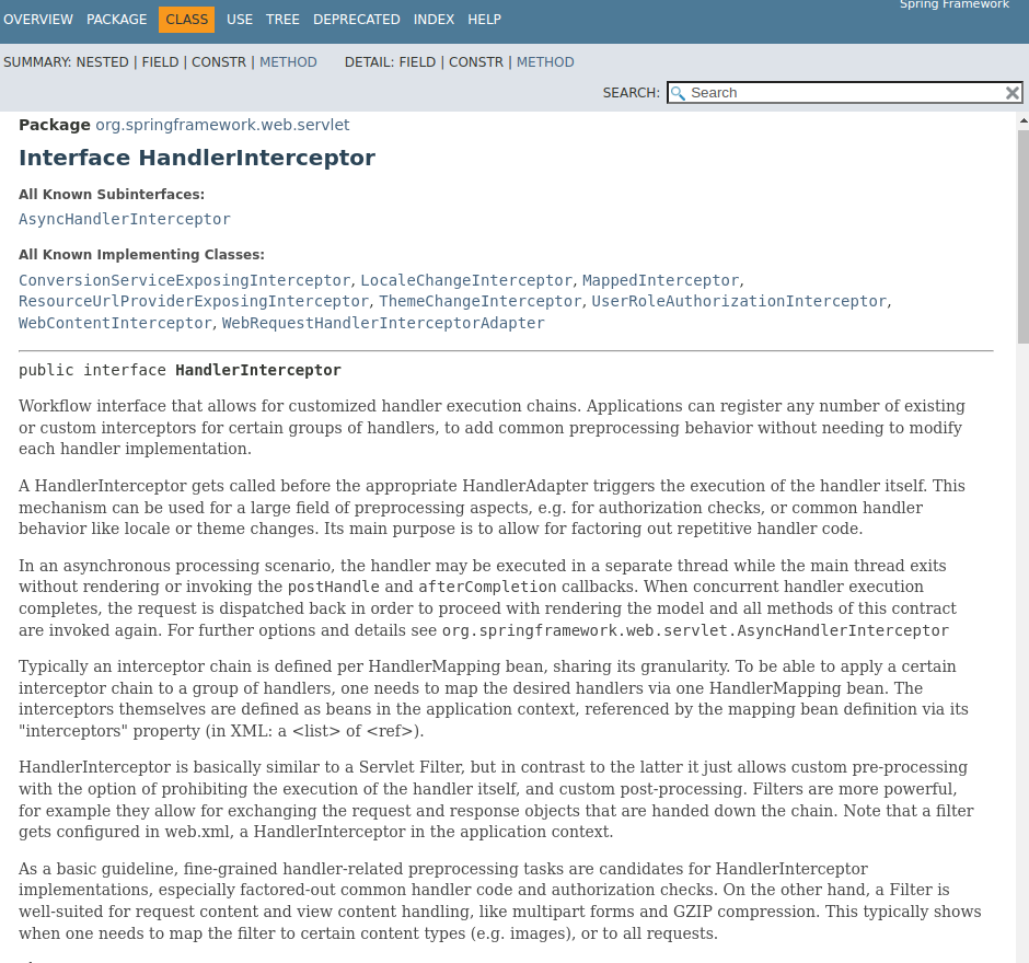 - https://docs.spring.io/spring-framework/docs/current/javadoc-api/org/springframework/web/servlet/HandlerInterceptor.html